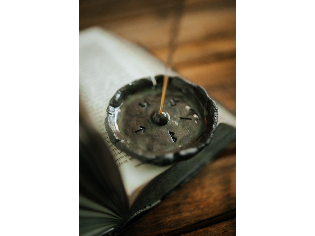 Keramický runový stojánek na vonnou tyčinku.