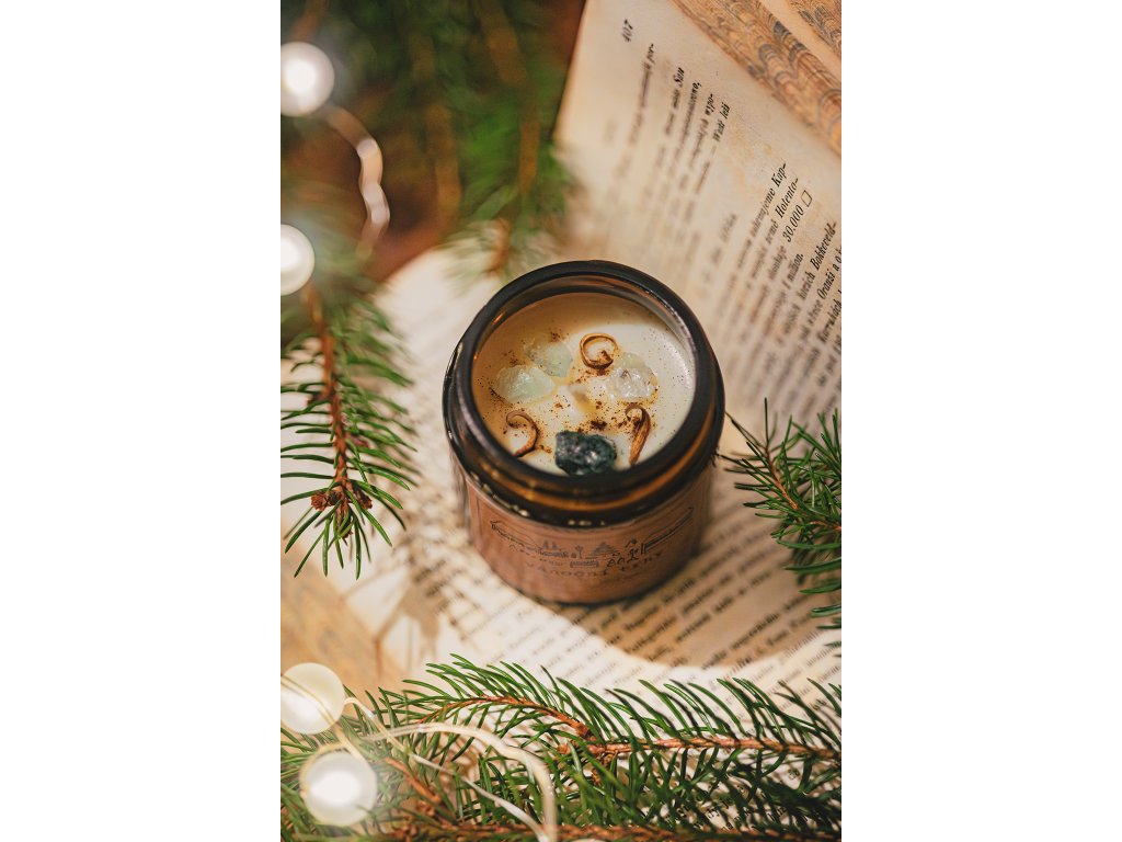 (Fotografie u produktů jsou pouze ilustrační, každá svíčka je unikátní, ručně dělaná a vzhledově se může lišit. Stejně tak počet a velikost kamenů. Lehce se může lišit i hladina vosku.)